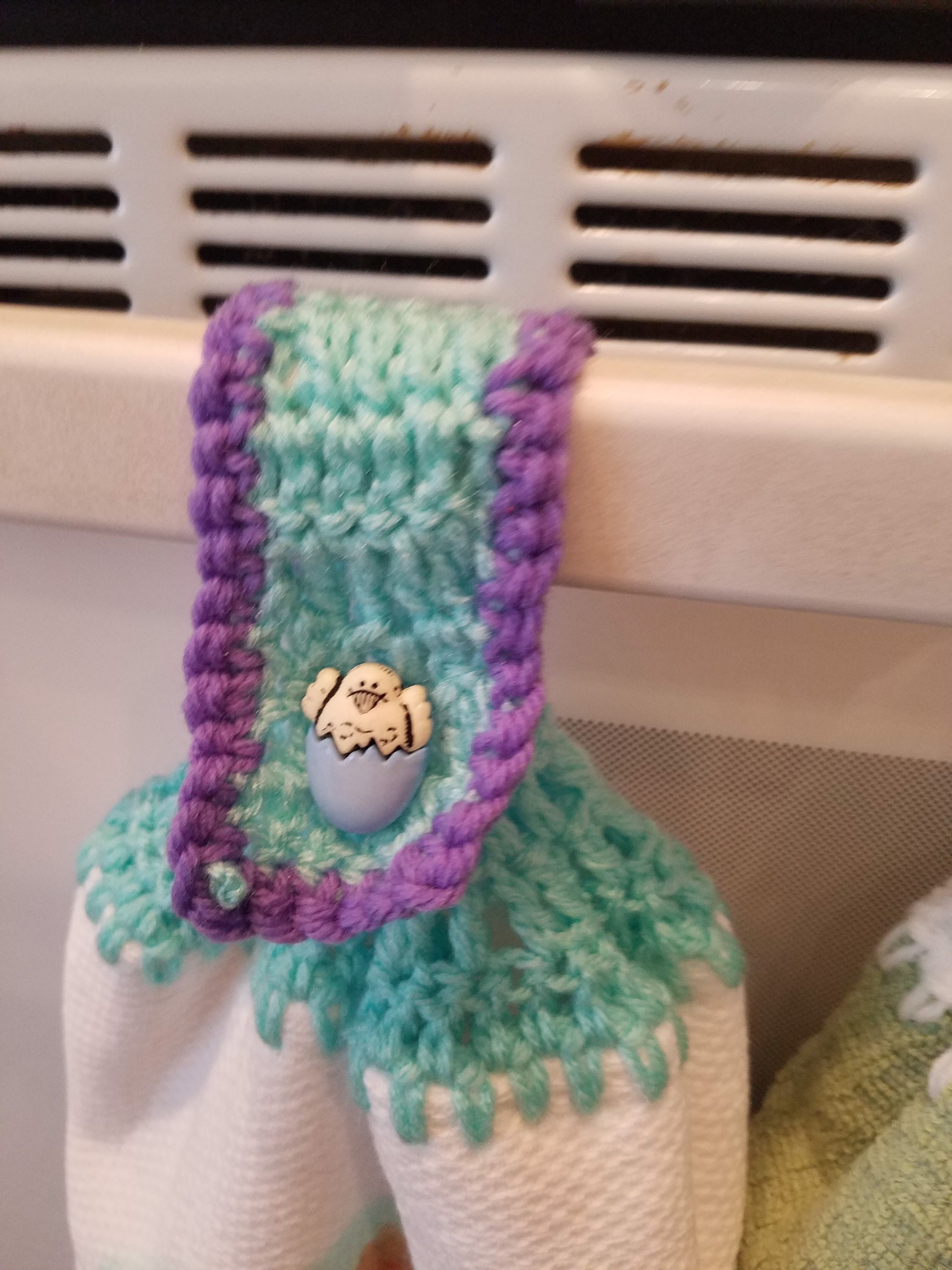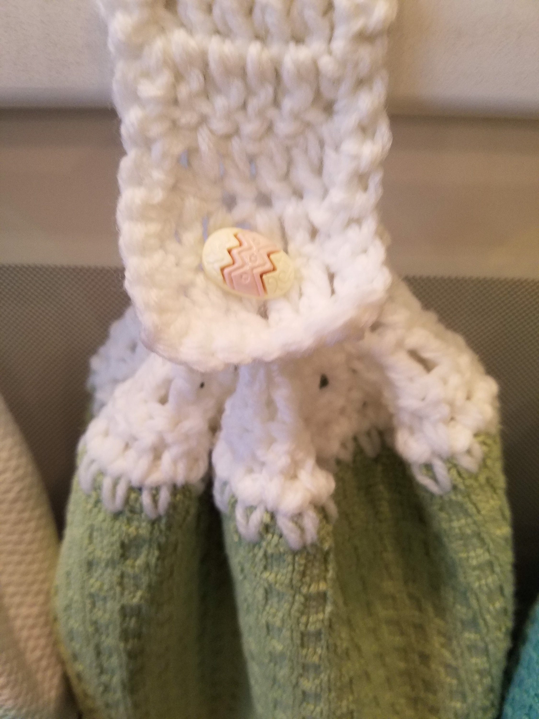 This set features 4 Spring crochet handmade hand towels. These towels are very plush. They are also the WHOLE towel, not just half!! We prefer having a double layer of towel! The top is hand crocket with yarn. Each towel will have a button which will differ from the ones pictured if more then one set is ordered. However, the crochet top and bottom remains consistent.